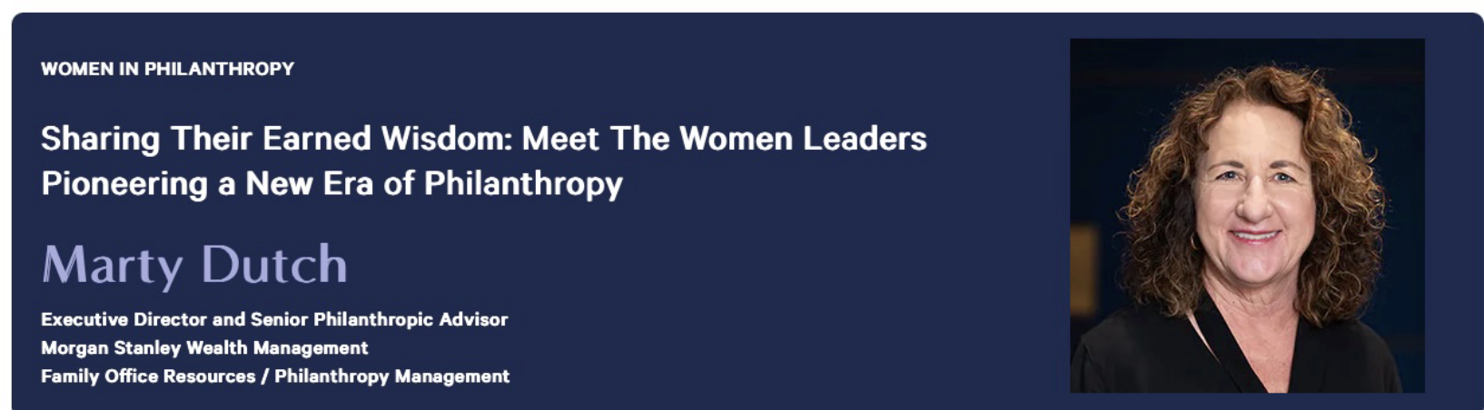 In our next interview, we caught up with Morgan Stanley's Executive Director and Senior Philanthropic Advisor Marty Dutch who is sharing the wisdom she's earned while working in the wealth management sector.